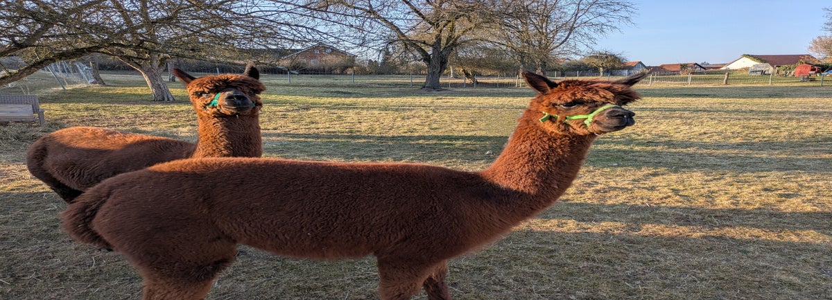 Ich bin der "starke" Chef. Ich habe ein paar eigene Crias (Jungtiere) in der Herde.